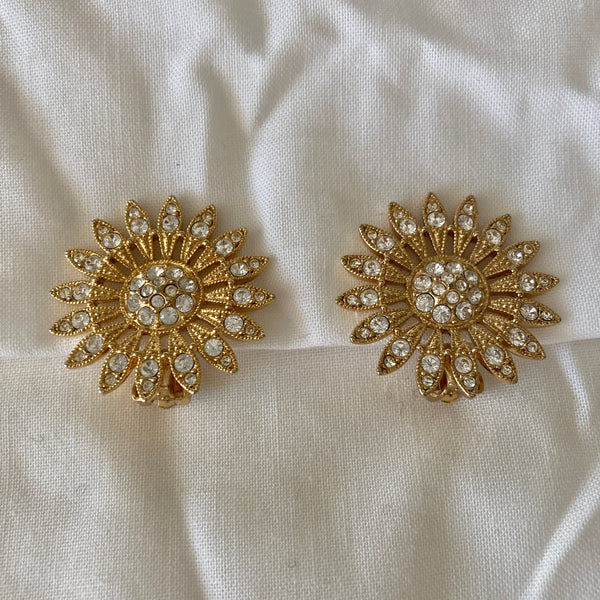 VINTAGE 1960s RHINESTONE GOLD TONE CIRCLE EARRINGS | 1960s VINTAGE GOLD TONE CLIP ON EARRINGS | 1960s COSTUME EARRINGS