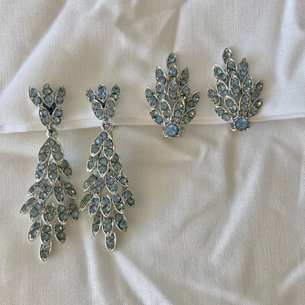 1960s ICE BLUE SILVER TONE COMPLETE JEWELRY SET