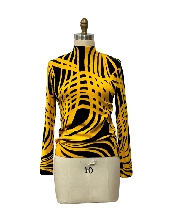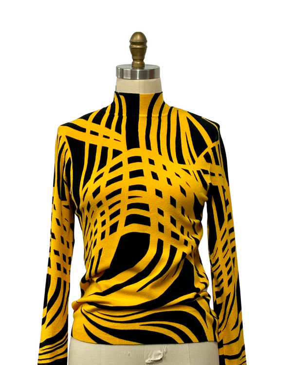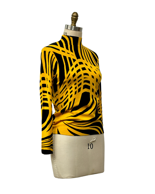 1960s YELLOW & BLACK MOD PRINT SWEATER