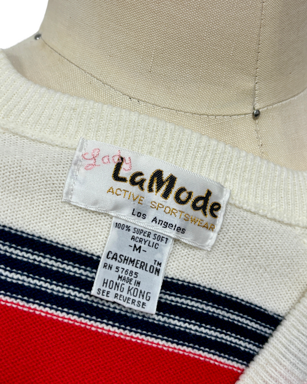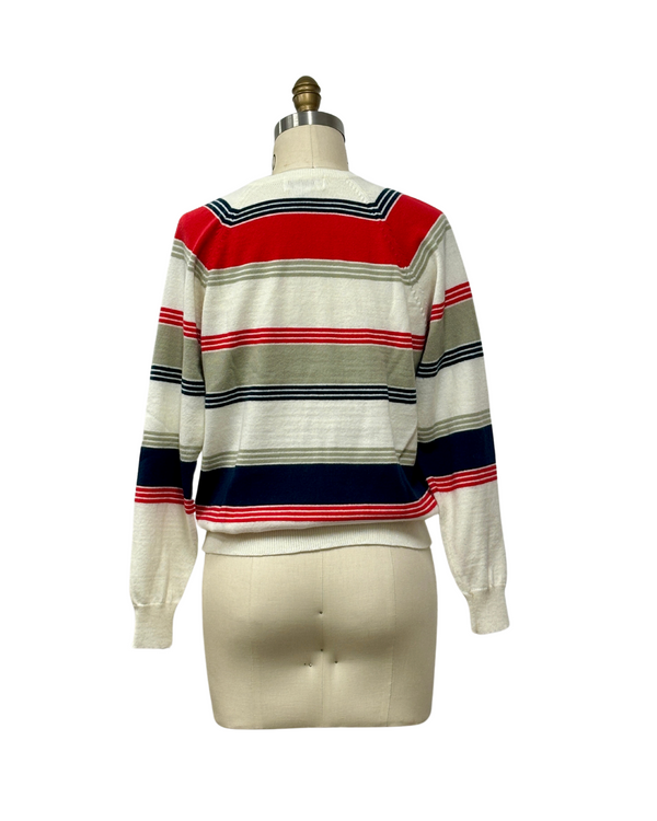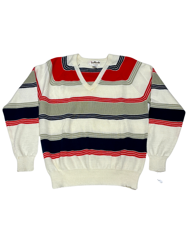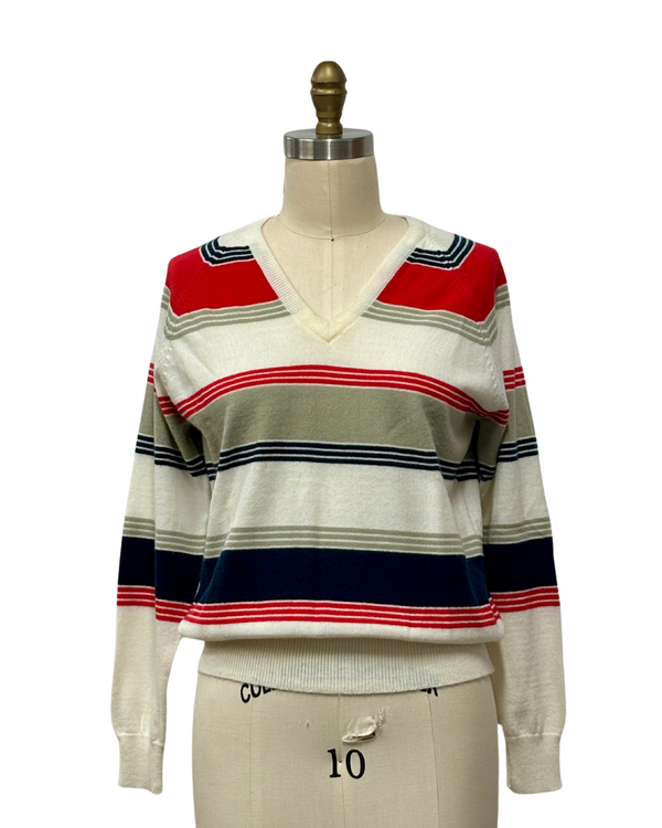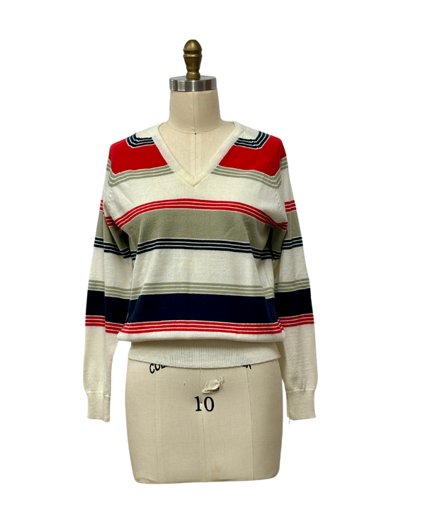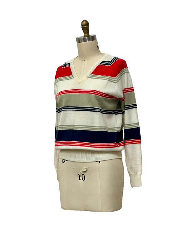 1970s RED, WHITE & GRAY STRIPED SWEATER