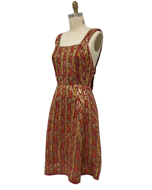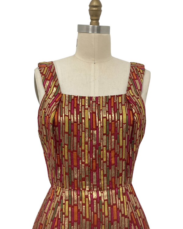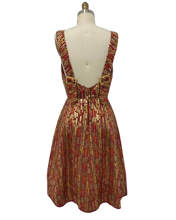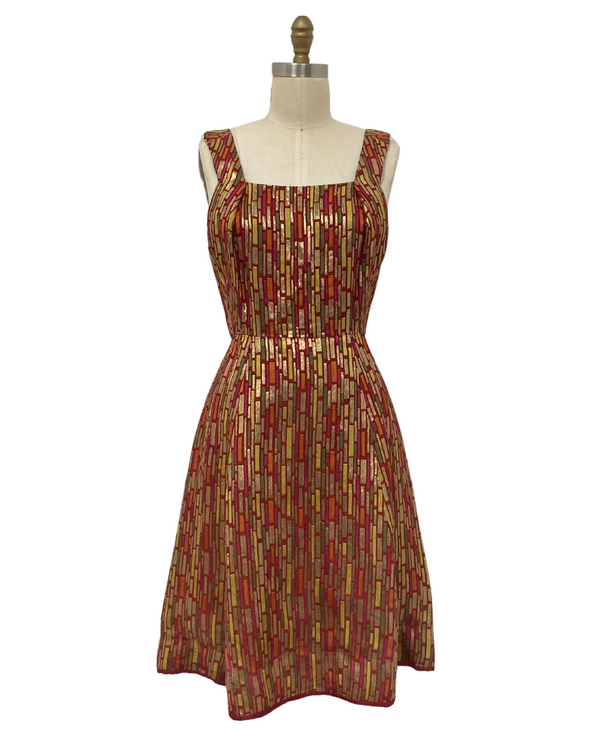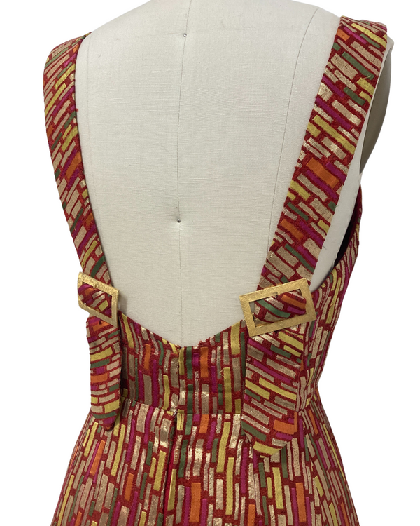 1960s GOLD, YELLOW and GREEN METALLIC PARTY DRESS | 1960s JEAN LOUIS DRESS | 1960s DESIGNER BELTED DRESS | 1960s COCKTAIL DRESS | 1960S LAME DRESS