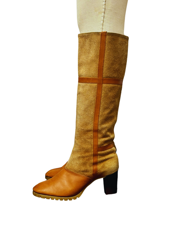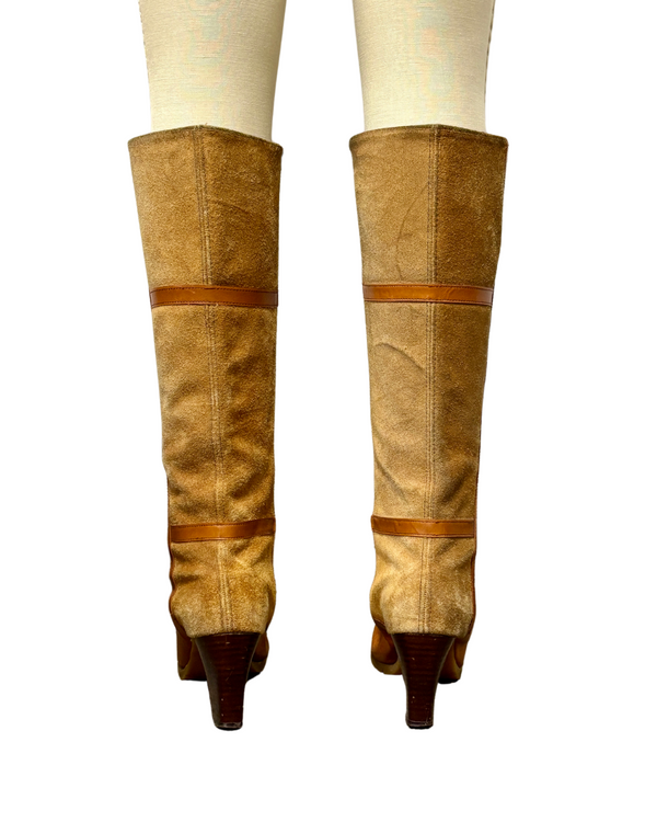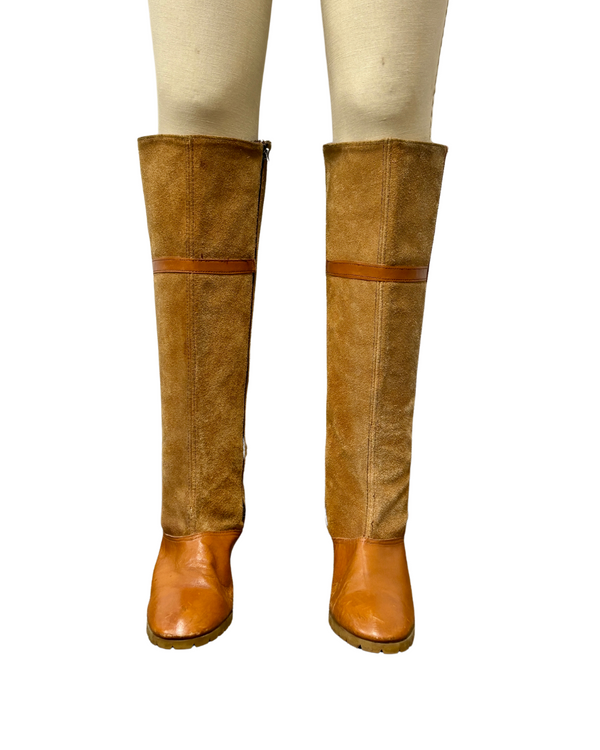1970s CAMEL SUEDE & LEATHER HIGH BOOTS {SIZE 7M}