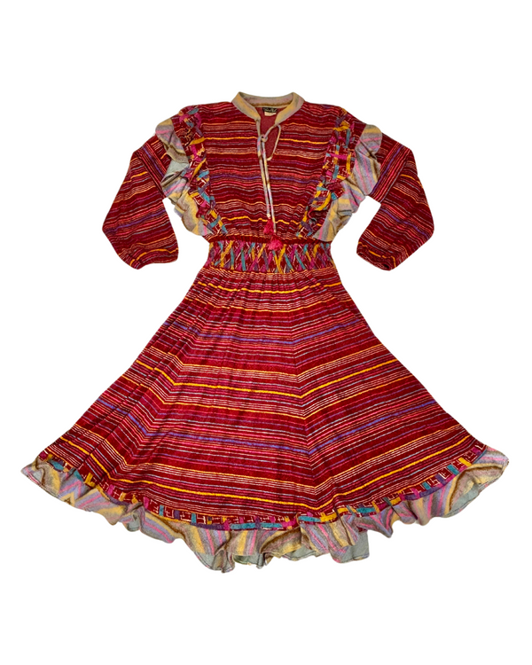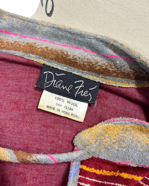 1980s BURGUNDY STRIPED DIANE FREIS DRESS {WAIST 32 INCHES}
