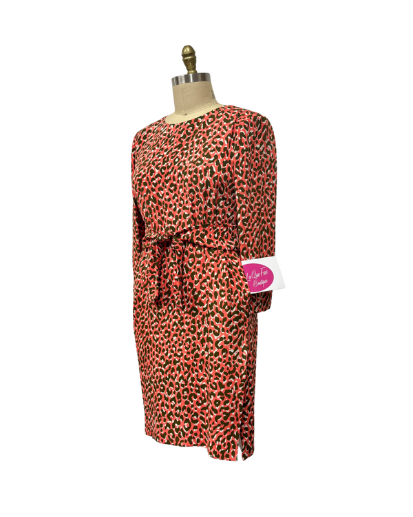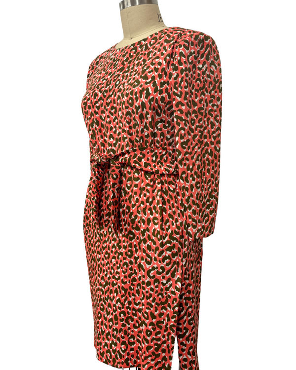 1980s ORANGE PRINT YVES SAINT LAURENT DRESS {WAIST 33 INCHES]