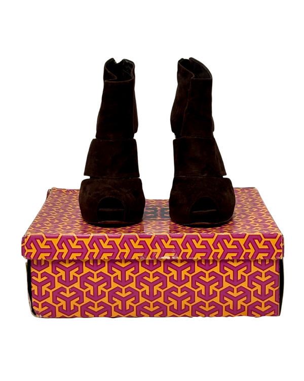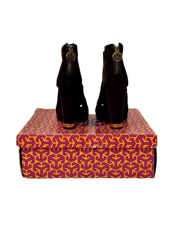 TORY BURCH BROWN SUEDE CUTOUT HEELS {SIZE 8}