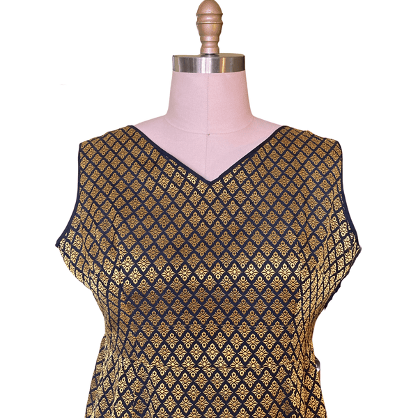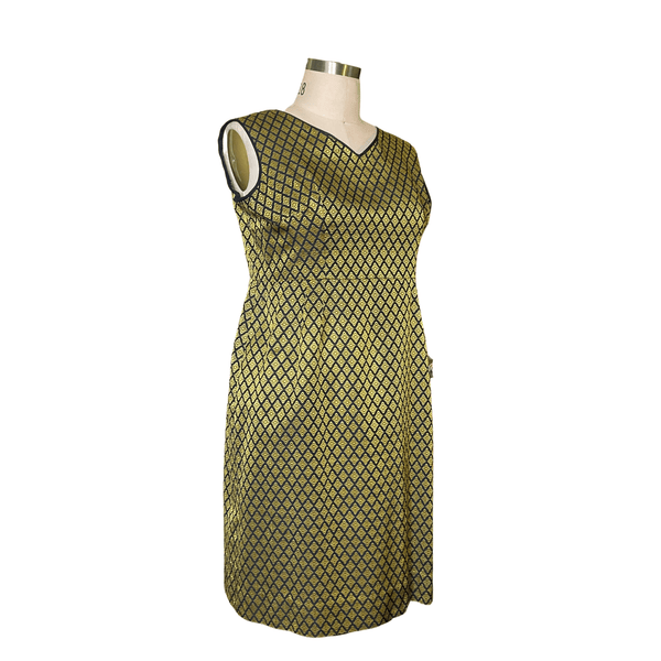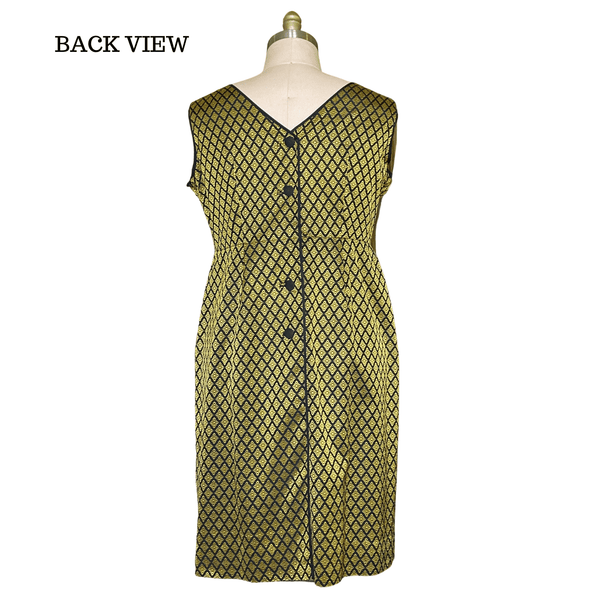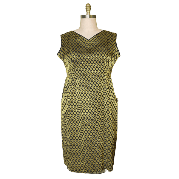 1960s PLUS SIZE GOLD & BLACK EMBROIDERED PRINT DRESS. GREAT COCKTAIL DRESS!