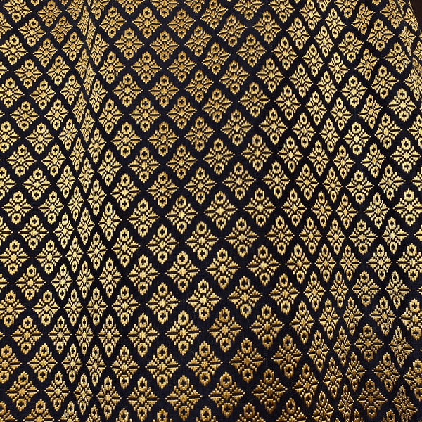 1960s PLUS SIZE GOLD & BLACK PRINT DRESS {WAIST 37 INCHES}