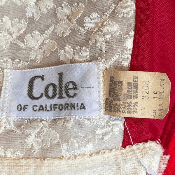 1960s RED & BLUE BOY SHORTS SWIMSUIT {WAIST 32 INCHES}